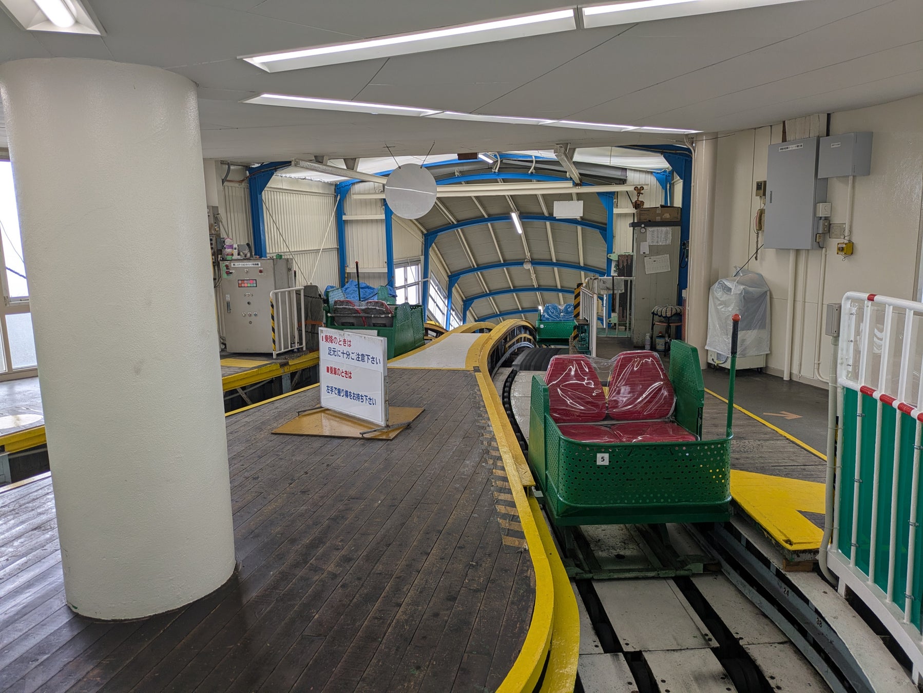 ・実は、須磨浦山上遊園以外にもカーレーターが使用されていた施設がありました。琵琶湖畔の「サンケイ・バレイ(現:びわ湖バレイ)」で、1964(昭和39)年に建設されましたが、維持費がかさむこともあり1975(昭和50)年に廃止され、代わって現在では大型ロープウェイに切り替えられています。そのため、現存するカーレーターは全国でもこの須磨浦山上遊園のみです。