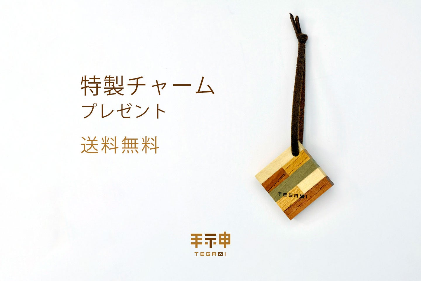 このチャームは、手神の人気商品である八角盆や八角茶筒と同じ上質な木材(ケヤキ・ホウ・ミズキ・トウヘンボク)を使用し、寄木指物師・小林じゅんのが25mm角の寄木にしました。表面にはレーザーでTEGAMIロゴを刻印したこの機会だけの特製品です。