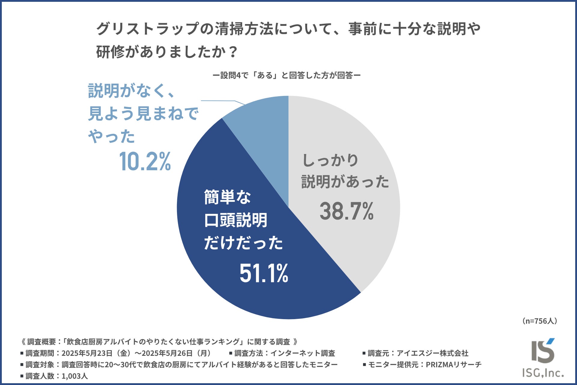 「グリストラップの清掃方法について、事前に十分な説明や研修があったか」と尋ねたところ、以下のような回答結果になりました。