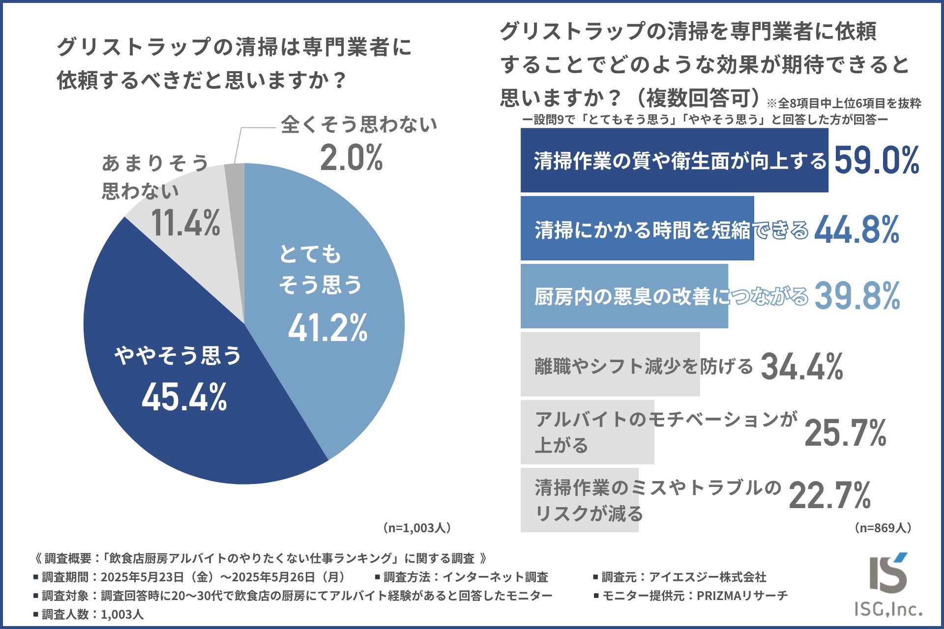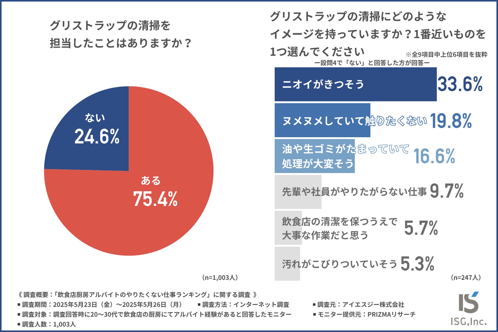 今回、「飲食店厨房アルバイトのやりたくない仕事ランキング」に関する調査を実施したアイエスジー株式会社(https://www.isgnet.jp/)は、グリストラップ清掃事業(https://www.isgnet.jp/greasetrap/)を行っています。