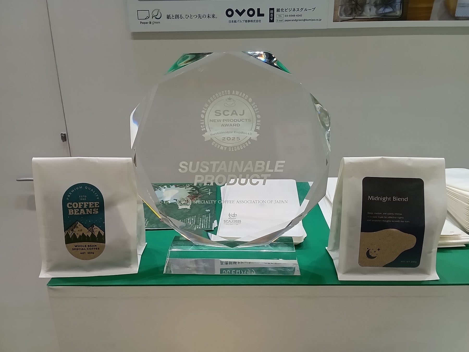 日本紙パルプ商事株式会社(本社:東京都中央区、代表取締役社長 社長執行役員:渡辺昭彦 以下、「当社」)が運営するPaper & Greenは、SCAJ ワールド スペシャルティコーヒー カンファレンス アンド エキシビション 2025(以下、「SCAJ」)が主催するNEW PRODUCTS AWARDにカミエコ® コーヒーパックを出品し、Sustainable Product 賞を受賞いたしましたのでお知らせいたします。
