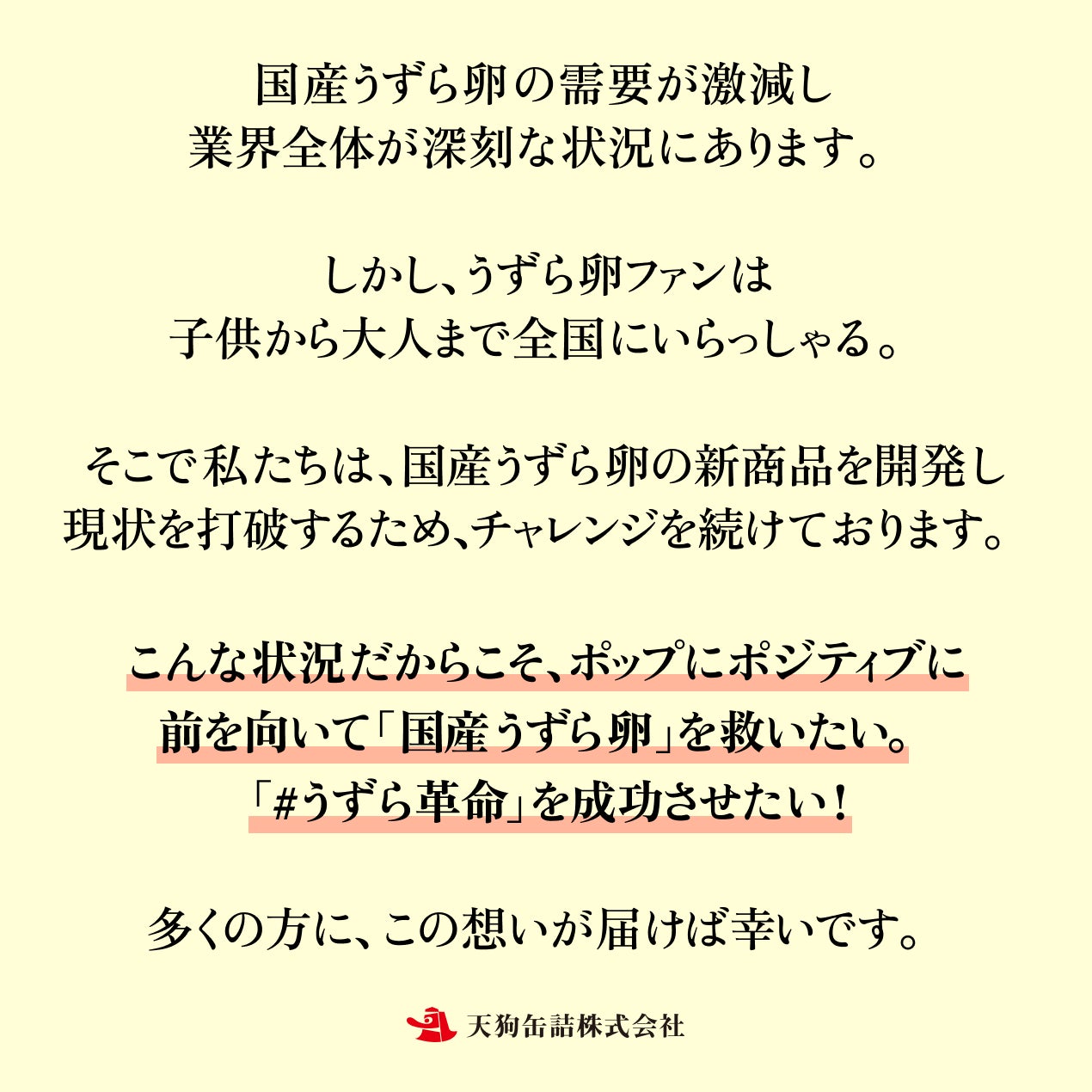 待ったなしの国産うずら卵危機! 天狗缶詰が「#うずら革命」掲げ、全く新しいうずら卵の商品開発に乗り出す!