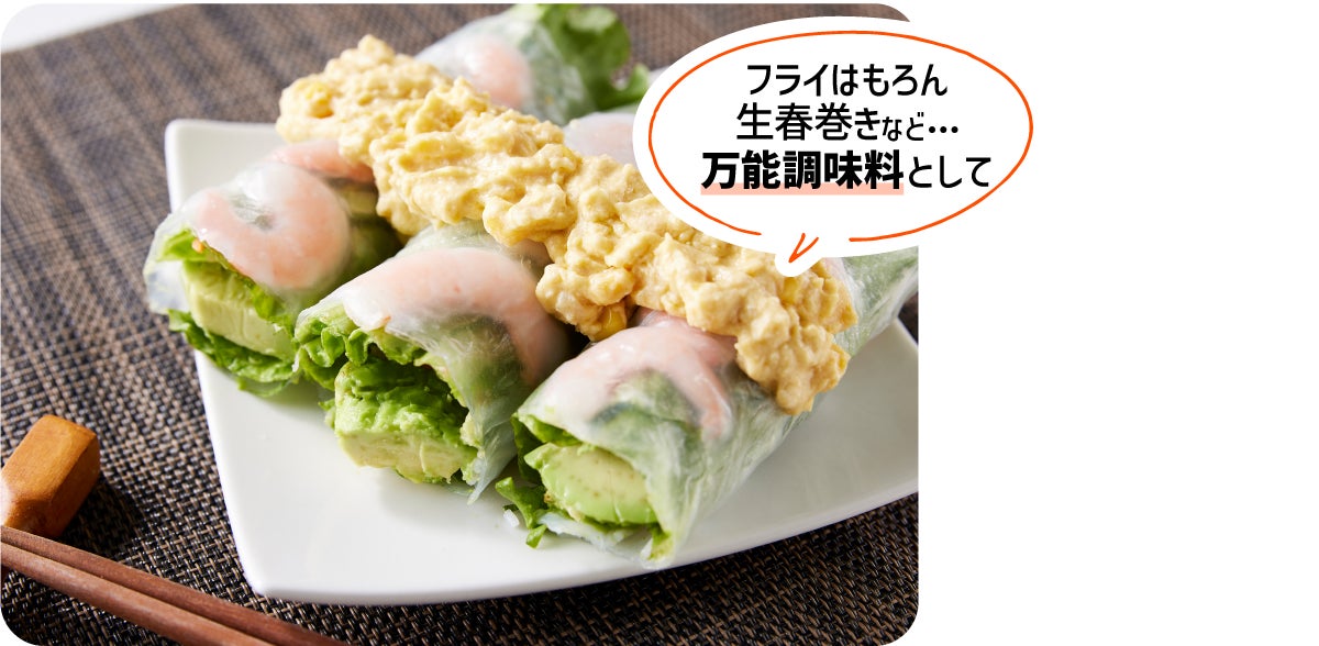 パンに塗れば、ボリューム満点のサンドイッチに。唐揚げにプラスすれば、新感覚の味変アイテムに。また、野菜やクラッカーにディップしても相性バッチリです!