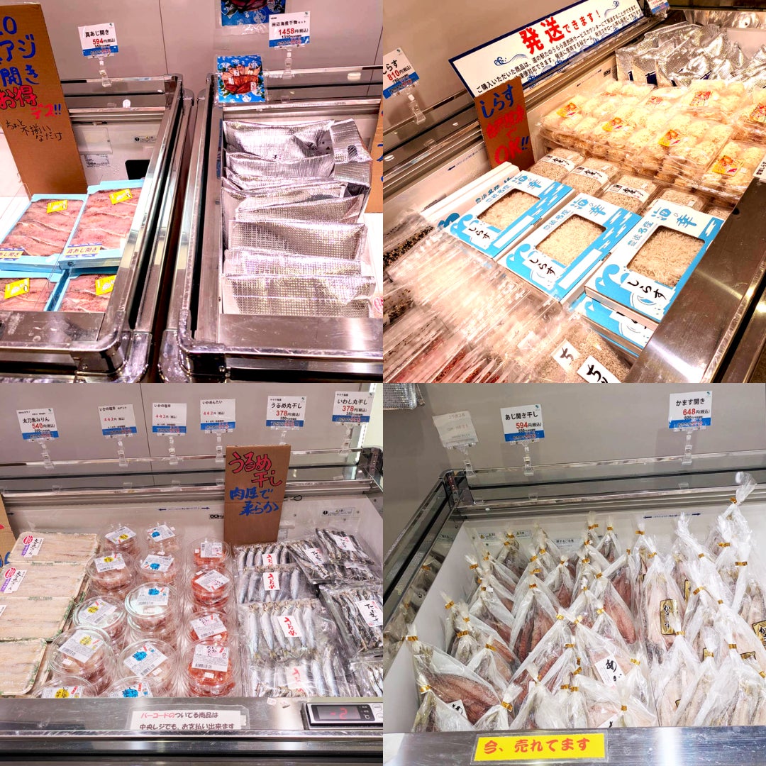 開き干しやみりん干し、丸干し、塩辛、しらす、ちりめん類など幅広いラインナップをご準備して皆様のお越しをお待ちしております。