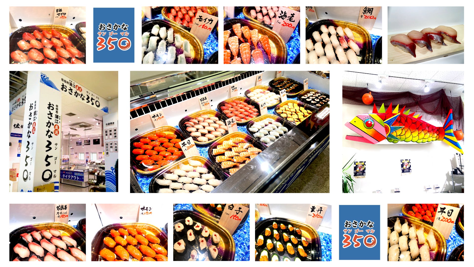 ※お支払いは店舗内にて現金のみとなります。寿司1貫の価格は150円,200円の2種類となりますので、小銭をご準備いただけますとお会計がスムーズです。ご協力をよろしくお願いいたします。また、寿司バイキング実施時間帯(10:30〜14:00)はホットスナック(アジフライ/エソすりみ天)のご提供は不可となります。その他の商品に関しましては中央レジをご利用ください。尚、氷は中央レジ後ろにございますので、ご利用ください。