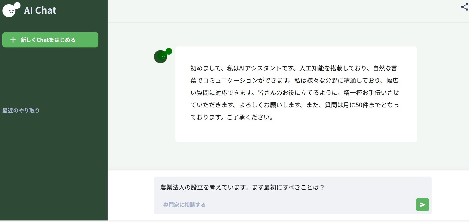 農業界にはどのような専門家がいるのか、専門家に質問することによりどのような選択肢が広がるのか、ご自身の課題とマッチするのか、等をやり取りいただけます。