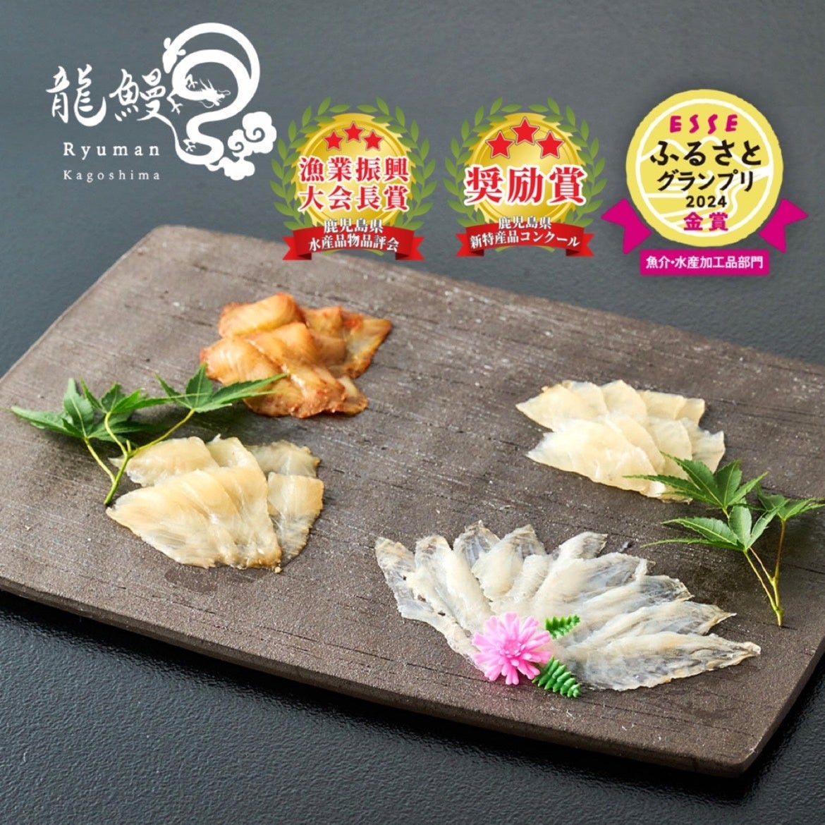 抽選で約50名様に店舗提供「うなぎの蒲焼」はじめ、ふるさと納税の奨励賞や漁業振興大会長賞・ふるさとグランプリ2024金賞など3つの賞を受賞した天登ジャパンエイジング【蒲焼かないうなぎ おつまみ4種盛り】や、ジャパンフードセレクション2025年グランプリ受賞、うなぎの鯉家【大トロうなぎのかば焼き】