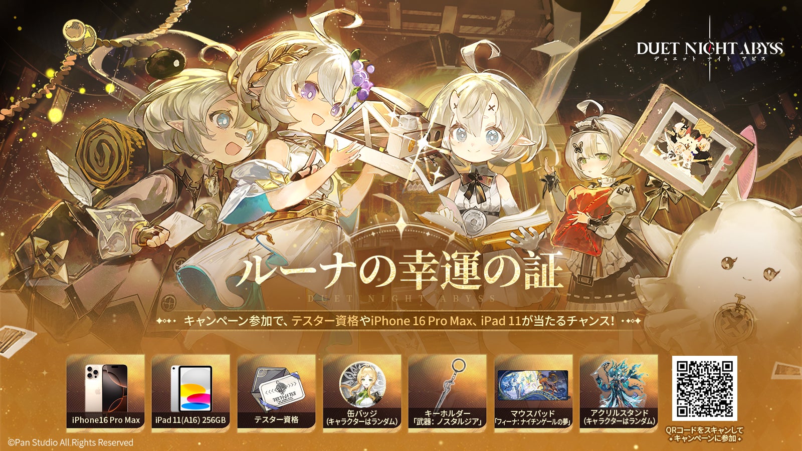 CBT2テスター応募受付開始にともない、特設サイトも同時公開しました。特設サイトにてルーレットに参加すると、テスター資格のほか、iPhone16 Pro Max、iPad 11や「デナアビ」限定オリジナルグッズなどが当たるチャンスがございます。ぜひご参加ください。