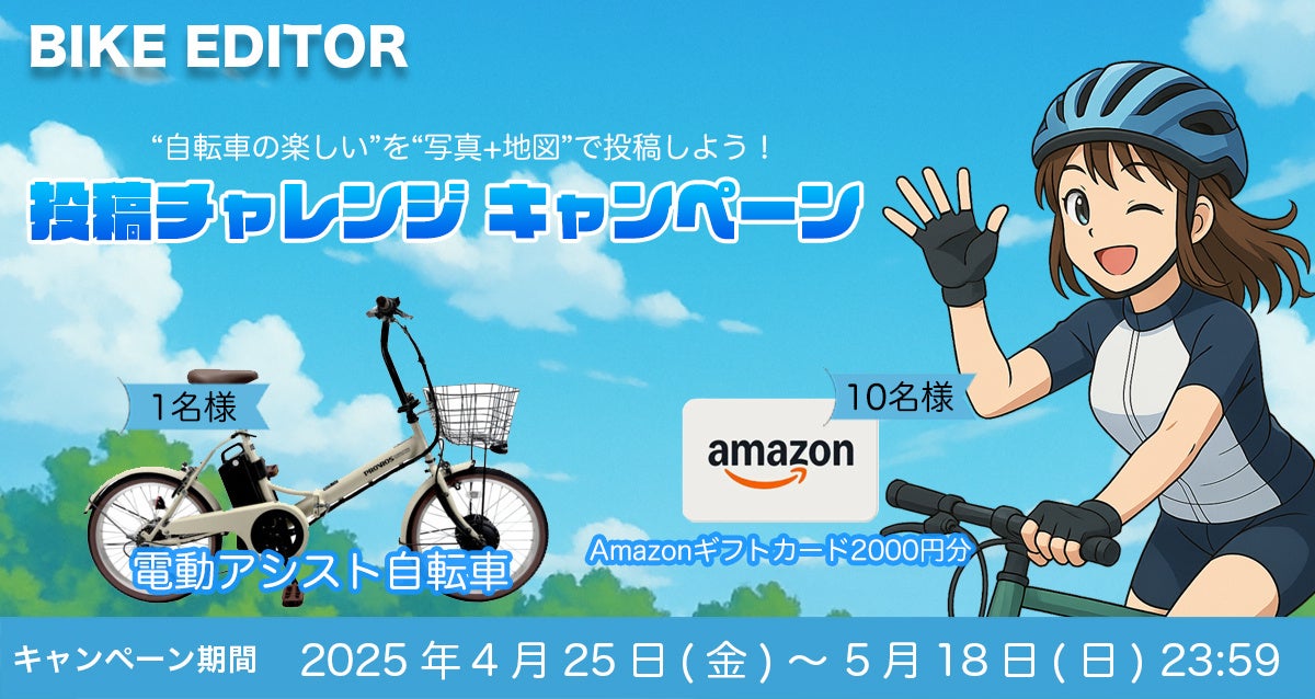 位置情報付きの投稿で、あの日走ったルートや思い出を地図上に残せる!電動アシスト自転車などが当たる「投稿チャレンジキャンペーン」も同時開催中!