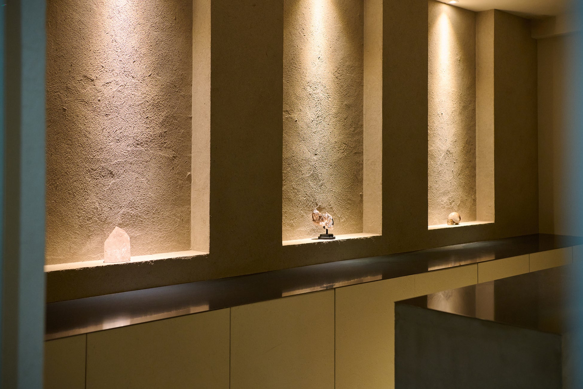 この度オープンする旗艦店は、SIXTH NIGHTの世界観を体現する空間となります。場所は職人文化が息づき、最先端の流行と歴史が交差する街・銀座。店舗の内装は、SIXTH NIGHT デザイナー兼クリエイティブディレクター田中 佑香がディレクションしました。ジュエリーそのものの存在感を最大限引き出すため余分な装飾を削ぎ落とし、鉄や土、石などの天然素材を主体に設計。日本の美意識や手仕事への敬意を感じさせる、静謐で温かみのある空間となっています。