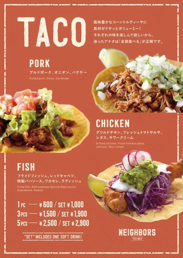TEX-MEX SHOP「NEIGHBORS」は、東京恵比寿で10年続くTEX-MEX料理の名店「440broadway」の味を受け継ぎ提供します。