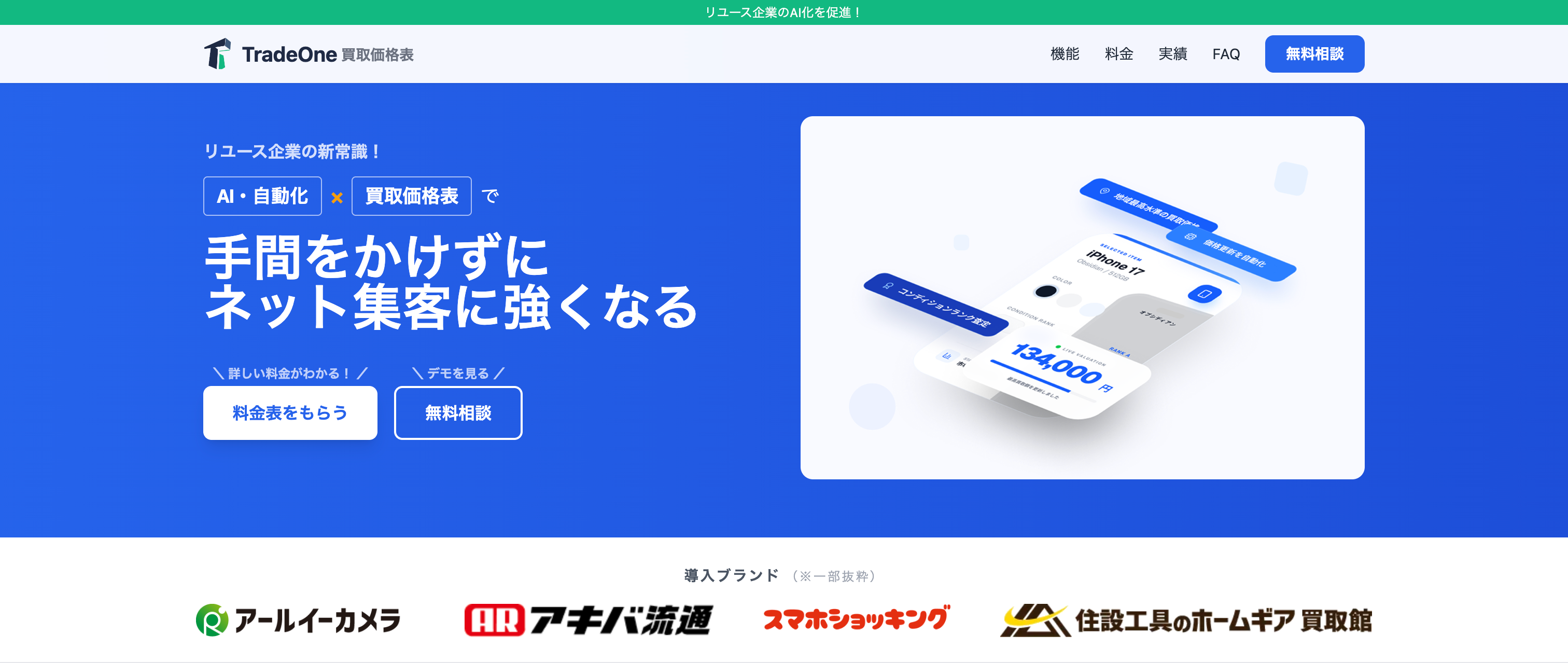 AI・自動化でリユース企業のネット集客を加速する「TradeOne買取価格表」正式リリース|3社限定・3ヶ月無料キャンペーン実施