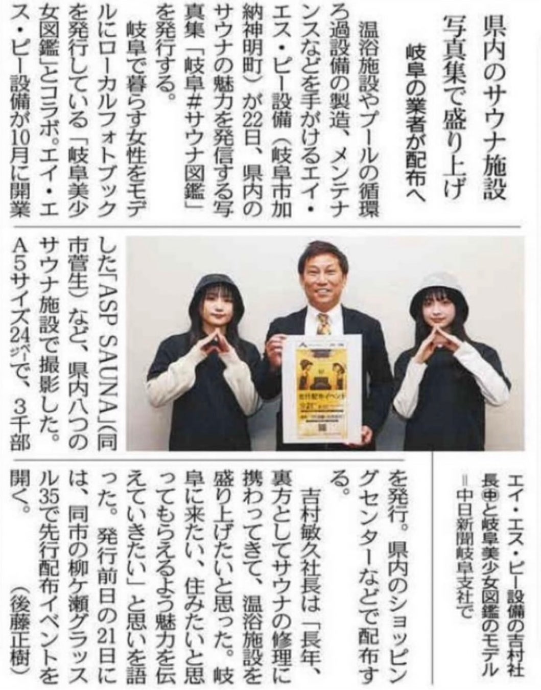 2024年12月21日付の中日新聞社にて、「岐阜美少女図鑑」とコラボし、新たに「岐阜#サウナ図鑑」を発行したとして取り上げられました。