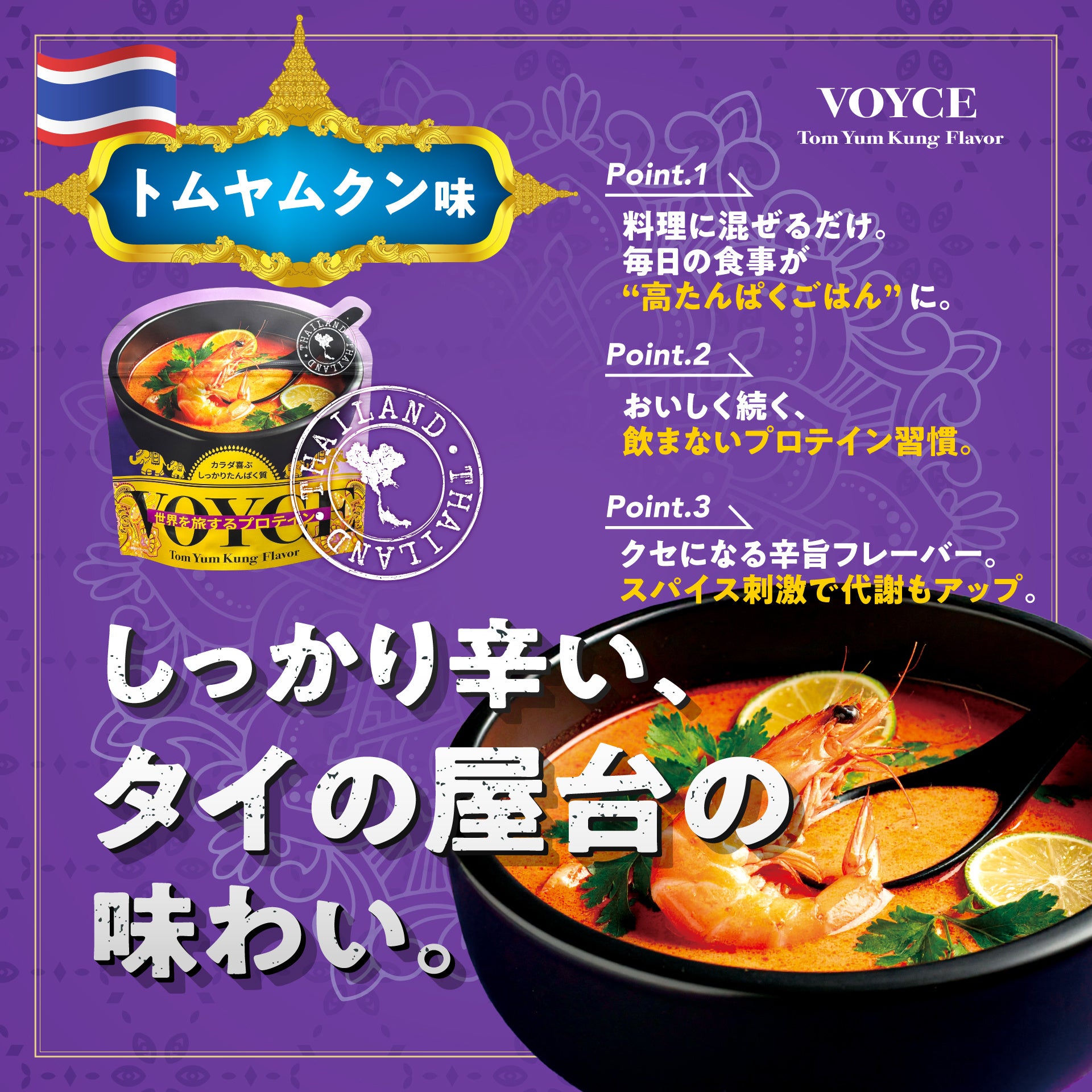 株式会社イクスラボ(本社:千葉県船橋市、代表取締役:桜木笑語)は、「Voyce(ヴォイス)」より、麻婆豆腐味とトムヤムクン味の『Voyce 世界を旅するプロテイン』を販売開始しました。