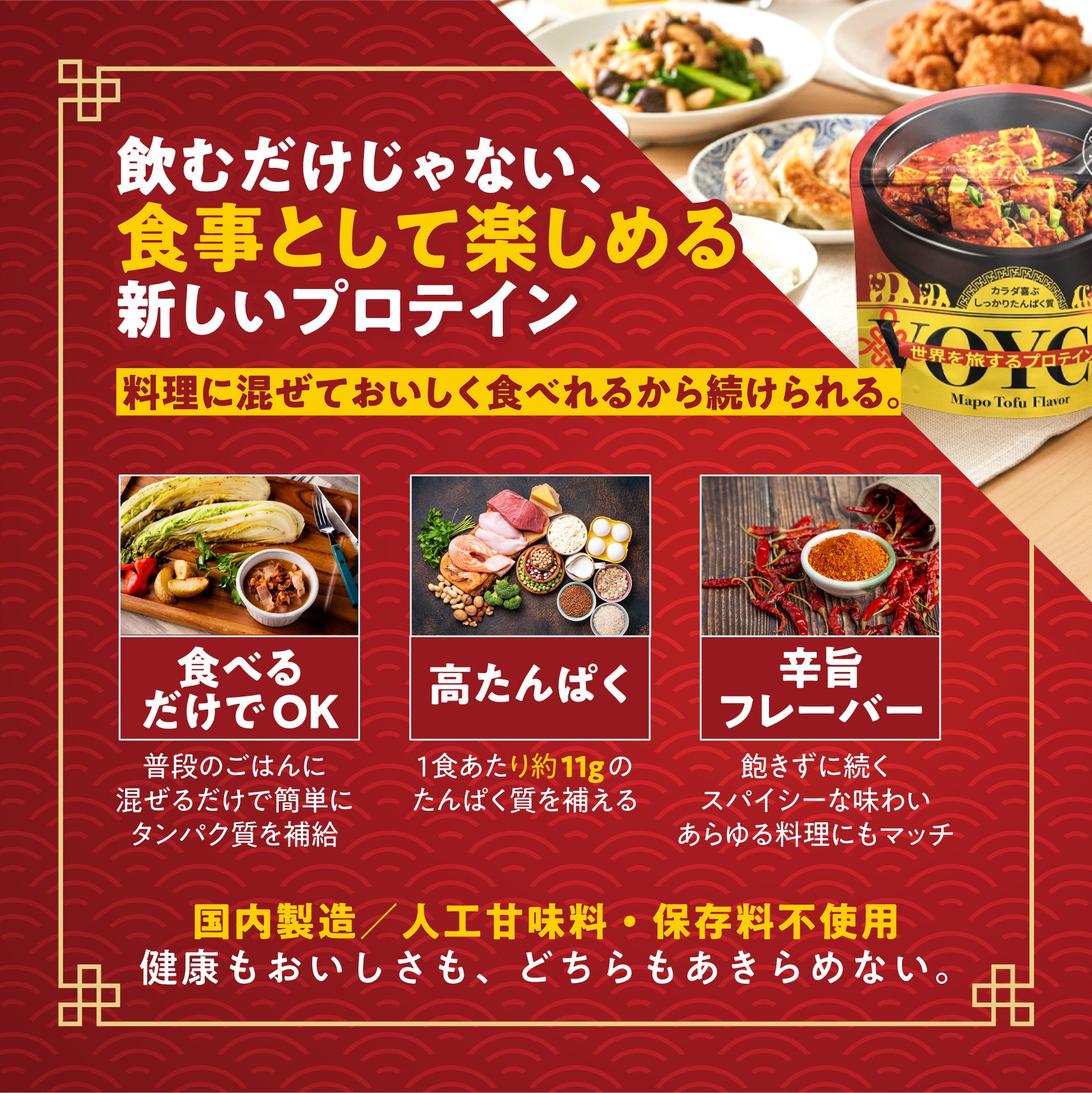 【世界初!?】日本テレビ「DayDay.」に紹介された辛いプロテイン―麻婆豆腐味・トムヤムクン味『Voyce 世界を旅するプロテイン』が販売開始!“食べれる”プロテインで日常の食事にたんぱく質を!