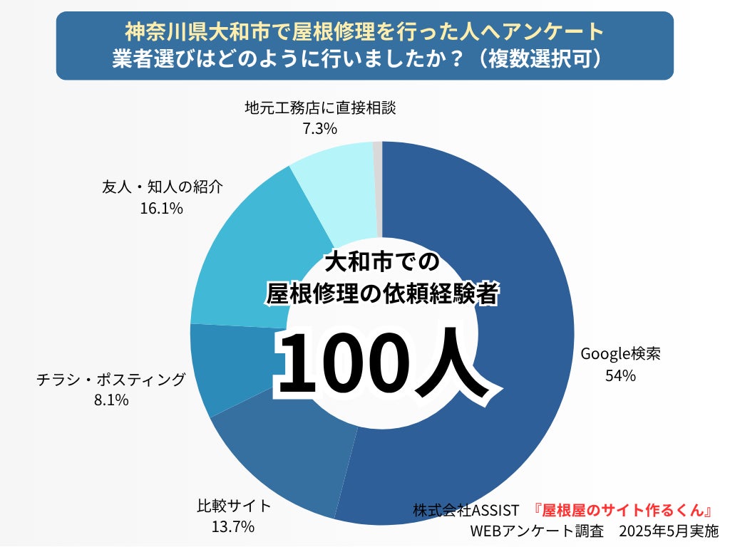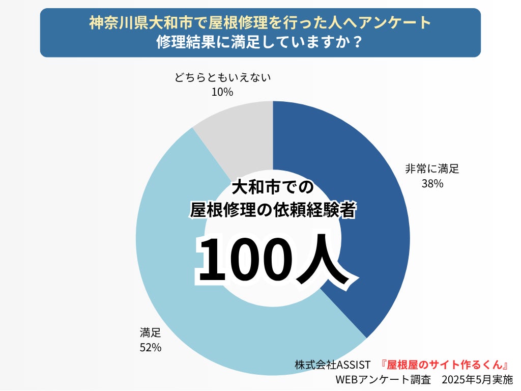 当社では2025年5月、神奈川県大和市周辺で実際に屋根修理を依頼した経験のある住民100人を対象に、業者選びの方法や困ったこと、満足度などについて詳細な調査を実施しました。