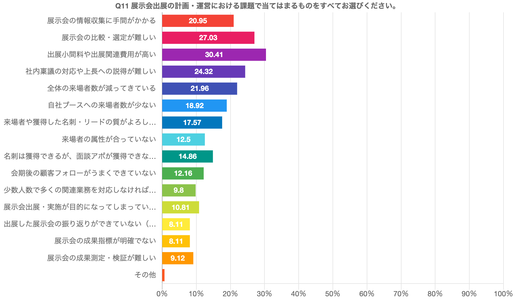 展示会の比較・選定が難しい:27.0%