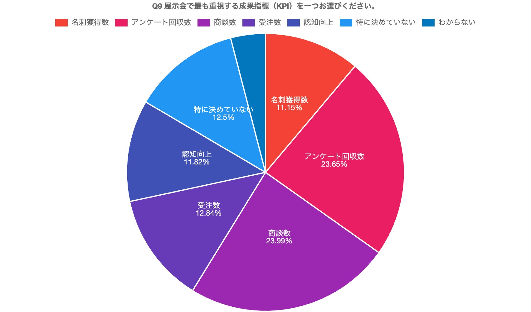 展示会におけるKPIとしては、「商談数(24.0%)」「アンケート回収数(23.6%)」が上位を占める結果となりました。