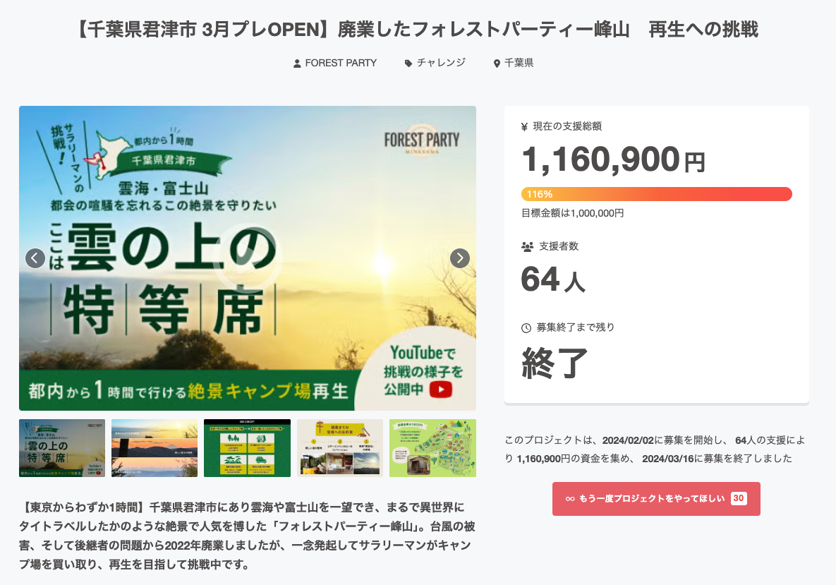 「フォレストパーティー峰山は、地元で長く愛されてきたキャンプ場でしたが、後継者不足により、廃業となった後、老朽化が進んでいました。ーー人里離れたプライベート空間、山頂から見える絶景、訪れる人を癒す空気。初めてこの場所に立ったとき、"ここを絶やしてはいけない"と強く感じました。お客さんと運営メンバーという関係性ではなく、会員の皆さんと一緒にこの場所をつくっていく。私たちが目指しているのは、そんな姿です。まだまだ綺麗なキャンプ場とは言えませんが、山奥で本気で秘密基地をつくっている大人たちに出会えるのは、ここだけだと思います。少しでも気になったら、ぜひ一度遊びきてみてください。」— 株式会社プレイバッカーズ 代表取締役 吉川隼大(よしかわ はやた)
