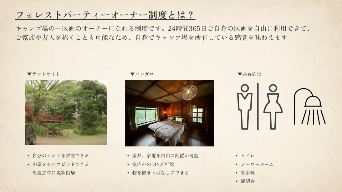 オーナー制キャンプ場「フォレストパーティー峰山」とは