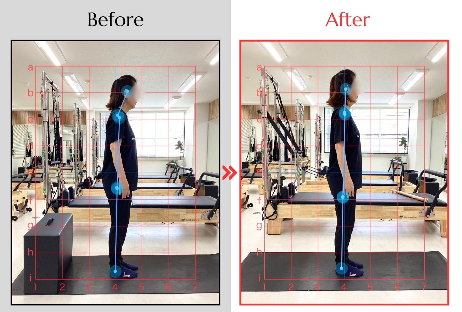 ピラティスの回数を重ねるにつれて、痛みの感じ方が弱くなり、O脚も緩和されていきました。