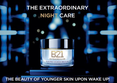 新製品のB21 エクストラオーディネール ナイト クリームは、クロノバイオロジー“のリズム”に着目した夜用処方。