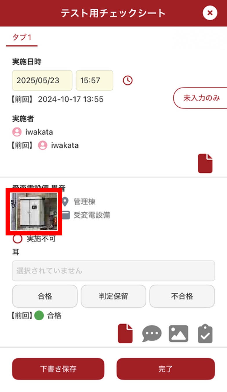1. チェックシートに画像のサムネイル表示機能を追加。点検対象がひと目で判断可能に