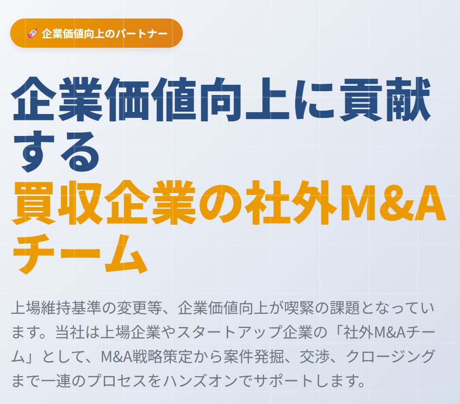 上場維持基準の厳格化やグロース市場の新基準(5年後時価総額100億円)など、企業価値向上への要求が高まるなか、M&Aは経営戦略上ますます重要な手段となっています。しかし、M&A人材の採用・育成コストは高騰し、専任担当者の確保が難しい企業が増加しています。