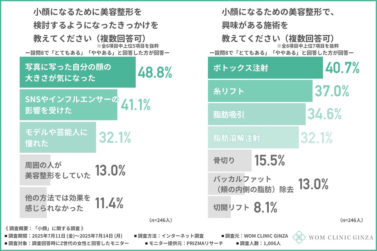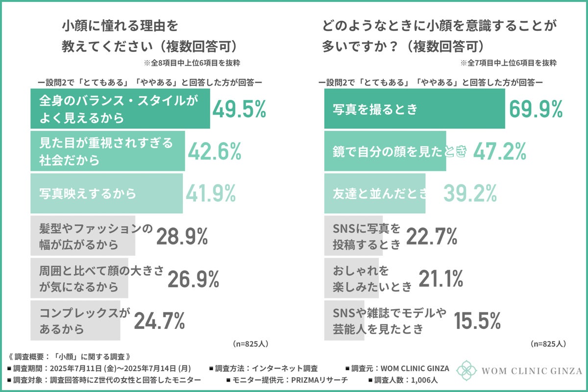 そこで今回、WOM CLINIC GINZA(https://wom-clinic.com/)は、Z世代の女性を対象に、「小顔」に関する調査を実施しました。