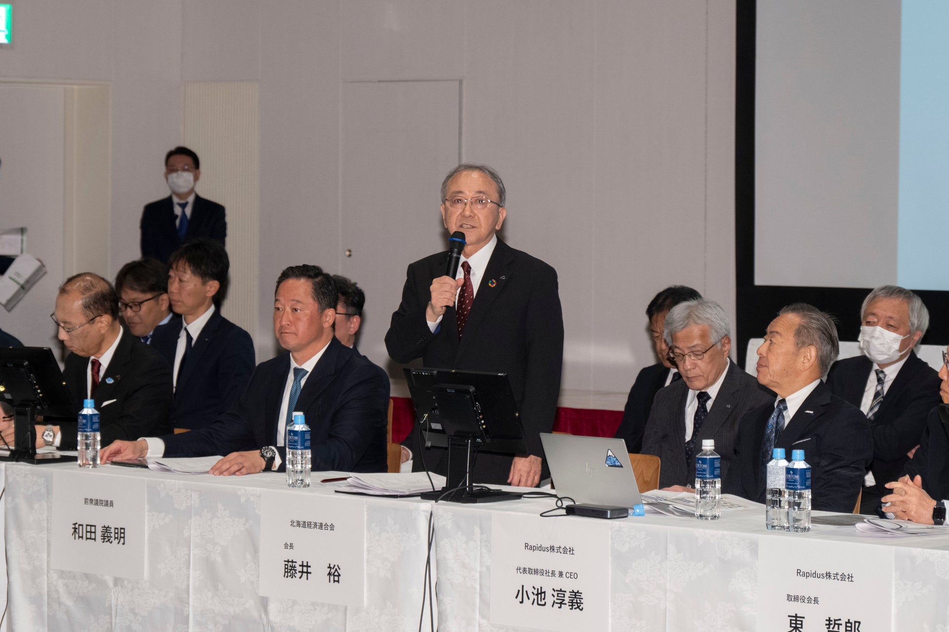 本協議会発足に伴う設立総会では、本協議会の会長に就任した北海道経済連合会 藤井裕会長より「Rapidus社によるこのプロジェクトは、北海道の経済振興にとどまらず、日本全体の産業競争力の強化、ひいては経済安全保障の観点からもきわめて重要なものである」との挨拶が述べられ、北海道にとっての転換点となるこのタイミングにおいて、どのような未来を描き、誰がその旗を掲げるのか――その問いに対する一つの答えとして、本協議会の意義が語られた。