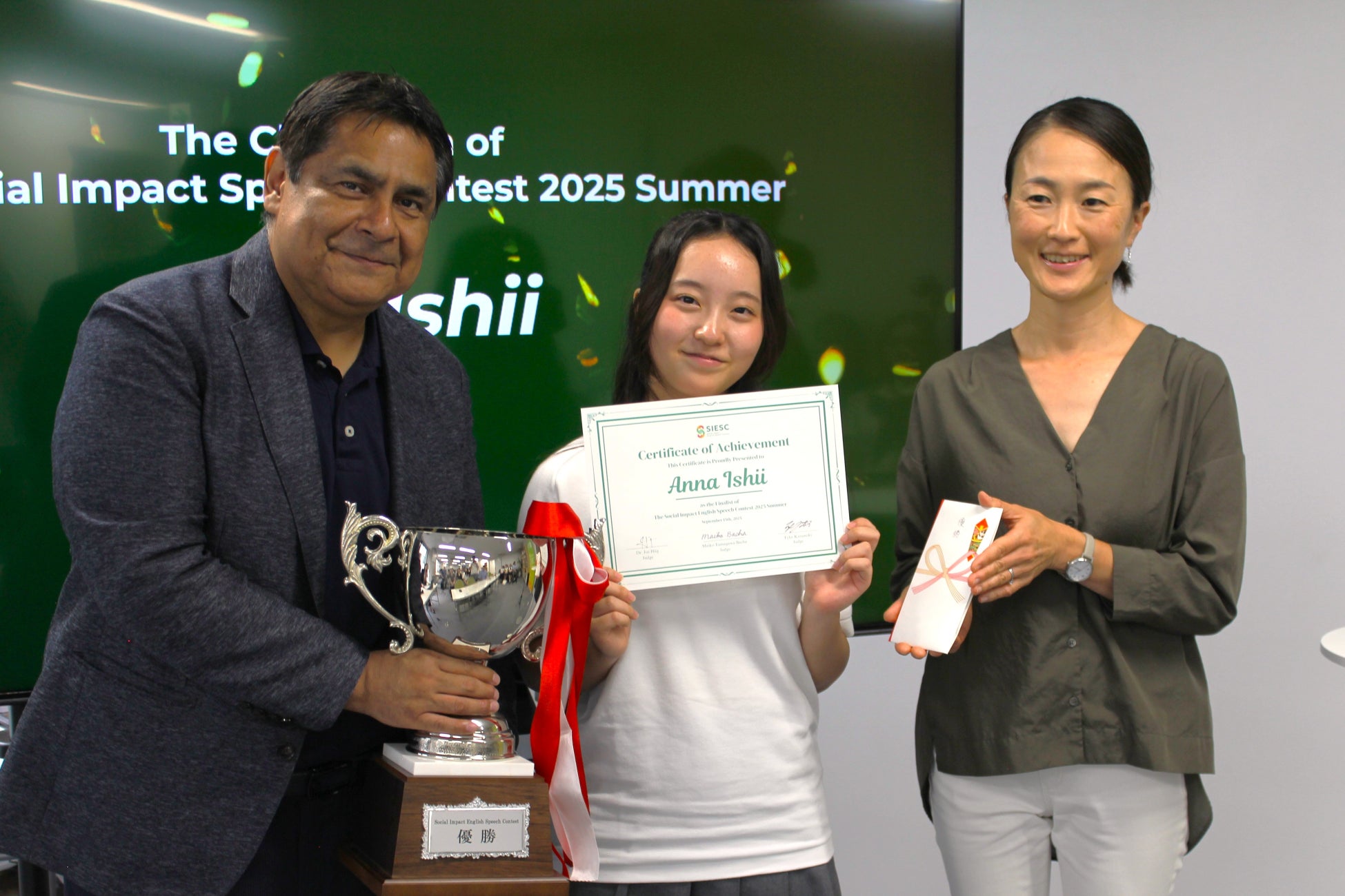 英語スピーチを通じて若者の社会的関心と表現力を育てる「ソーシャルインパクト全国英語スピーチコンテスト(SIESC)」は、2025年9月15日(月・祝)に東京で夏大会の決勝大会を開催しました。