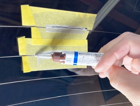 「自動車のリアガラスの電熱線修理やデフロスタータブの接着修理に非常に有効です」