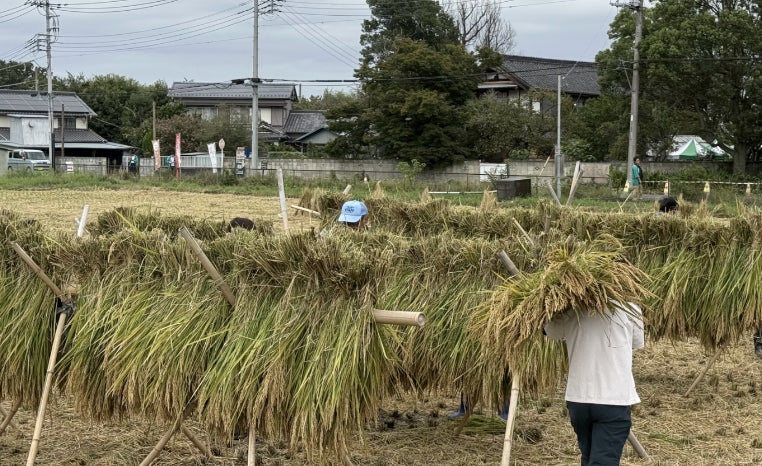 本イベントは、春の田植えに続く収穫プログラムとして、社員が「食を支える一次産業」に直接触れる機会をつくるものです。 黄金色に染まった田んぼの中で、社員たちは鎌を手に稲を刈り、束ね、天日に干すまでの一連の工程を体験。自然の力と人の手がつくる循環を実感する時間となりました。