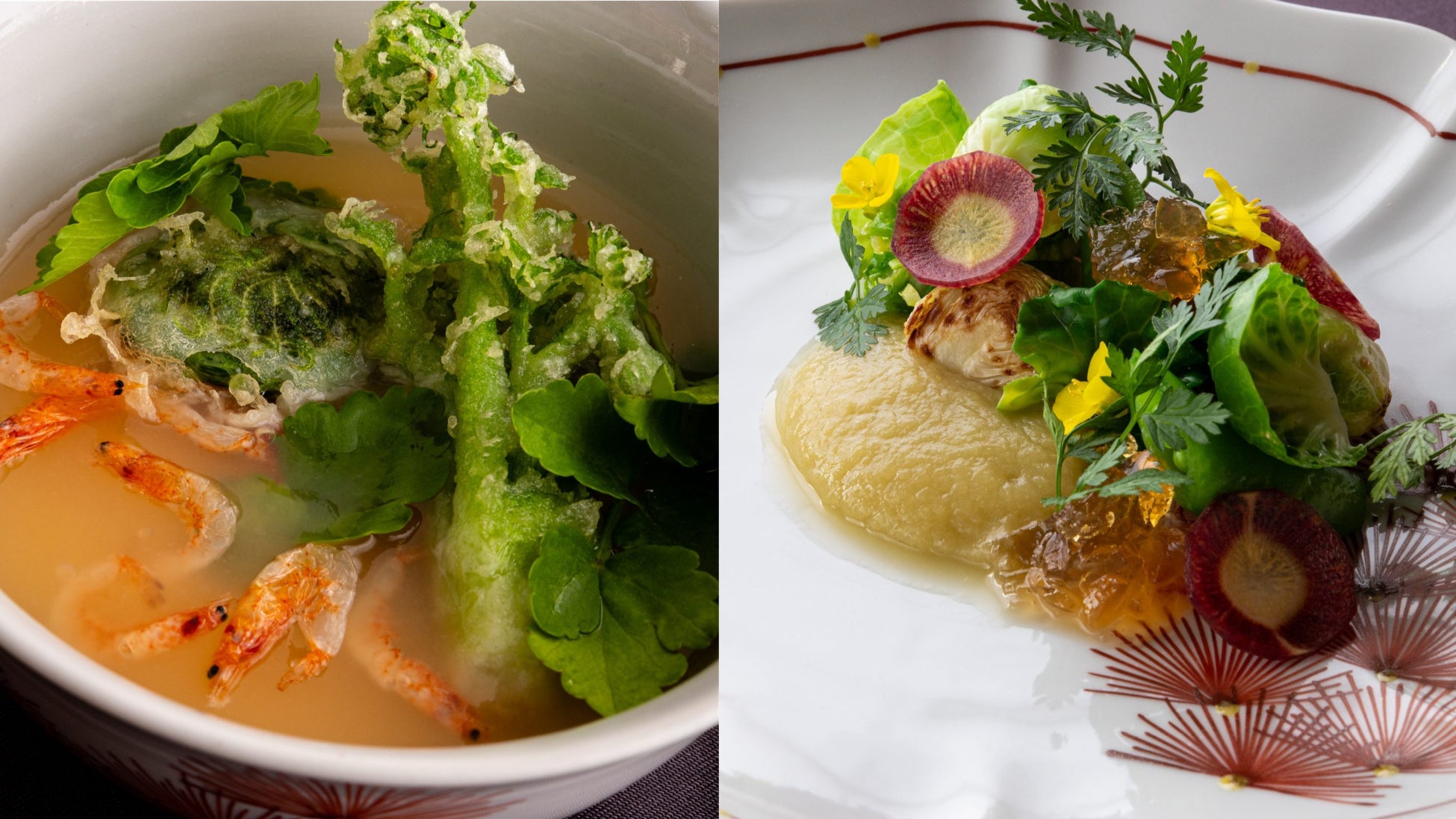 フランスの伝統的な卵料理「ロワイヤル」に、和出汁の繊細な風味が重なり、一口ごとに洋と和の美しい調和が広がる一皿。