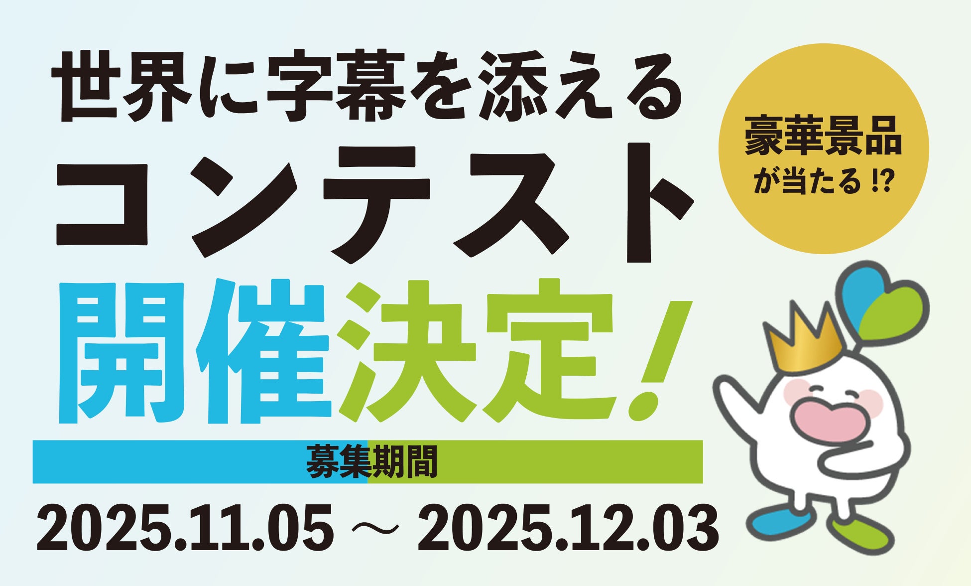 期間中、「YYSystem」を活用して「字幕を添えた」好事例や「こんな風に字幕を添えたい」というアイデア・要望を広く募集いたします。ご応募いただいた事例やアイデアを発掘・表彰・発信することで、”字幕が当たり前にある社会”を共に広げていくことを目指しています。