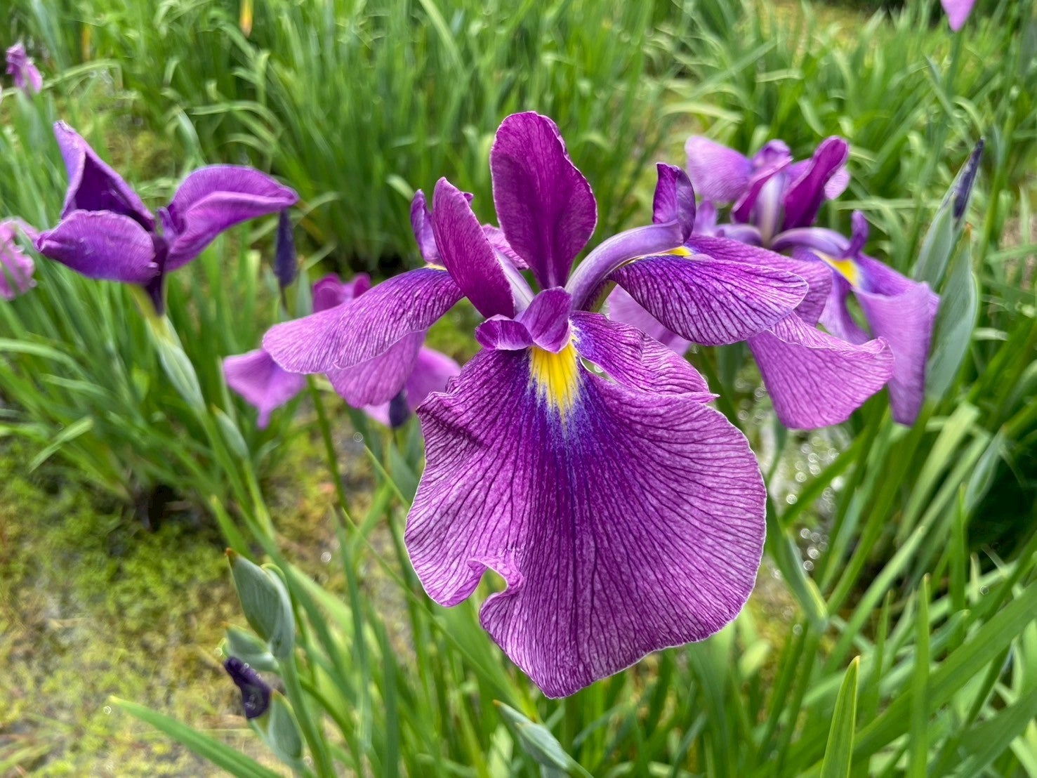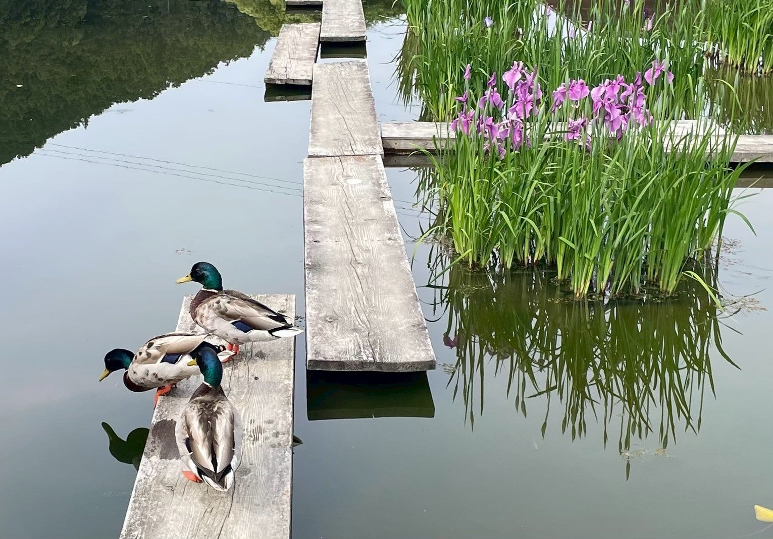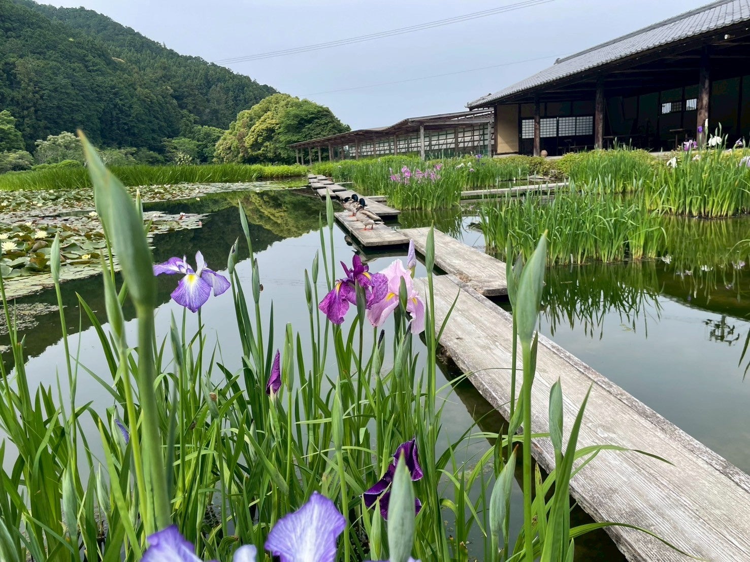 花菖蒲の花の命はおよそ3日間。これからも次々花開いて6月の中旬あたりまで私たちを楽しませてくれます。園内をゆっくり散策したり、写真を撮ったり、ぜひお楽しみください。加茂荘の花菖蒲園は今年で中締めの予定です。どうぞ、お見逃しなく。