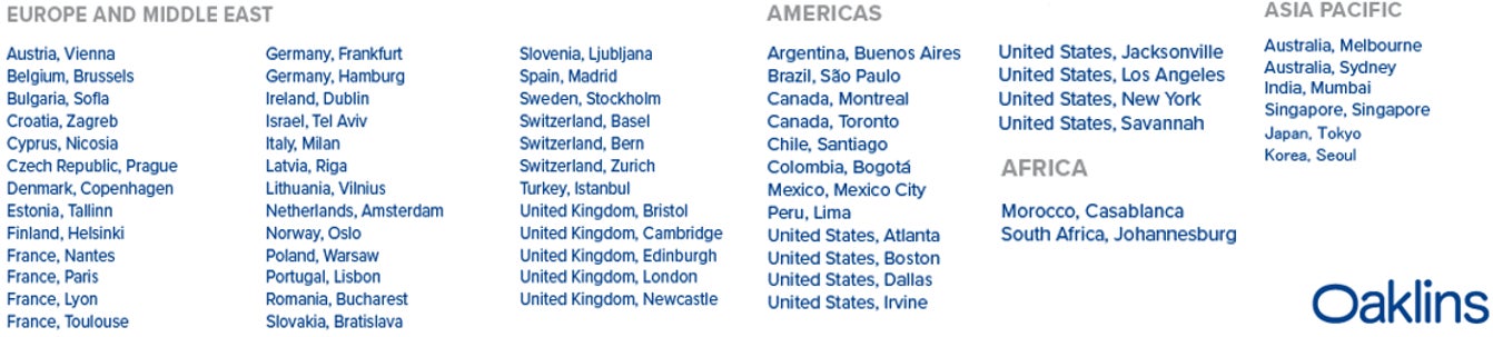 今回の加盟により、世界40ヵ国以上の主要都市に拠点を持つOaklinsのネットワークを活用し、クロスボーダー案件においても、高品質なサービスを迅速に提供することが可能となります。