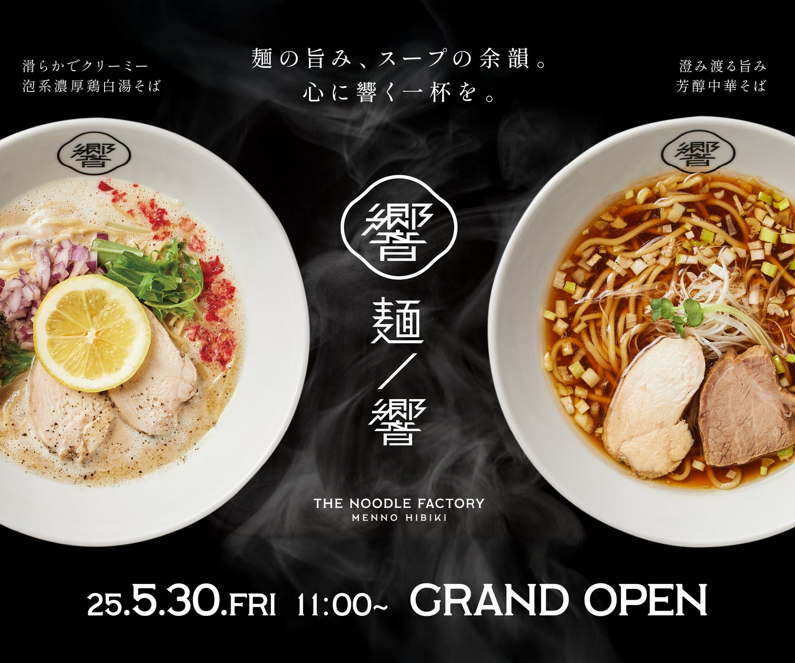 大阪・堺の工場跡地に自家製麺で麺にこだわったラーメン&つけそば専門店 「THE NOODLE FACTORY 麺ノ響(めんのひびき)」5/30(金)GRAND OPEN!