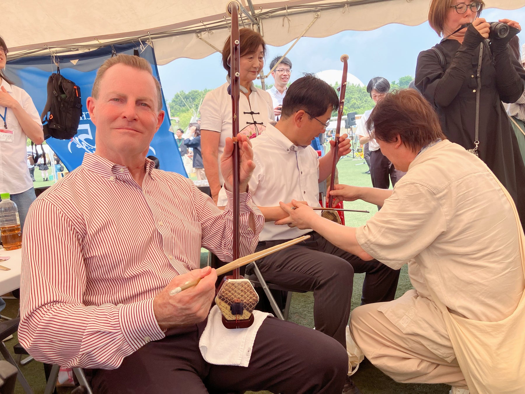 在日著名の二胡演奏家であり、江蘇省海外連誼会の常務理事でもある張濱氏は、開幕式にて見事な二胡演奏を披露したほか、江蘇ブース内でも来場者との温かい交流を行い、音楽を架け橋として故郷への想いと友情を伝えた。その情感豊かな演奏と観客との心の触れ合いは大きな反響を呼び、江蘇の音楽文化の魅力を広く発信する機会となった。来場者は、無形文化遺産の技に「手で触れ、目で見て、心で感じる」体験を通じて、文化のぬくもりを実感し、言葉を超えた心の共鳴を味わっていた。