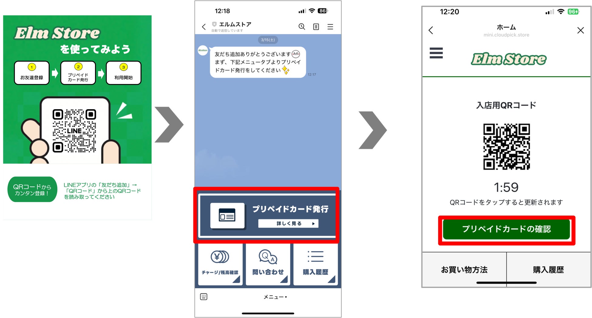 ② プリペイドカード(エルムコイン)を発行後チャージを行う