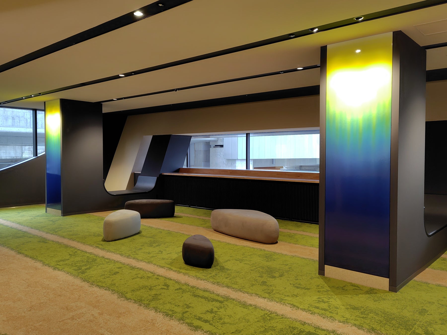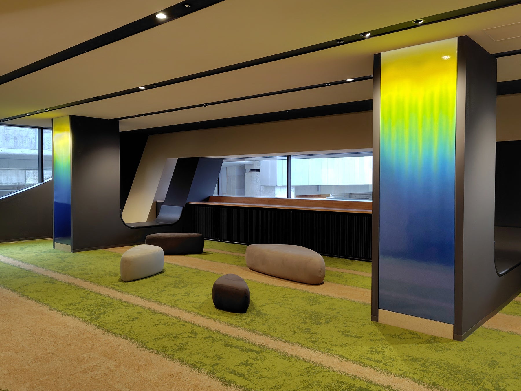 (1)ホワイエ(「瑞穂」高さ3m×幅80cmの陶板柱2点)