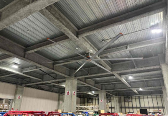 ・倉庫天井に大型シーリングファンの設置(2021年より)