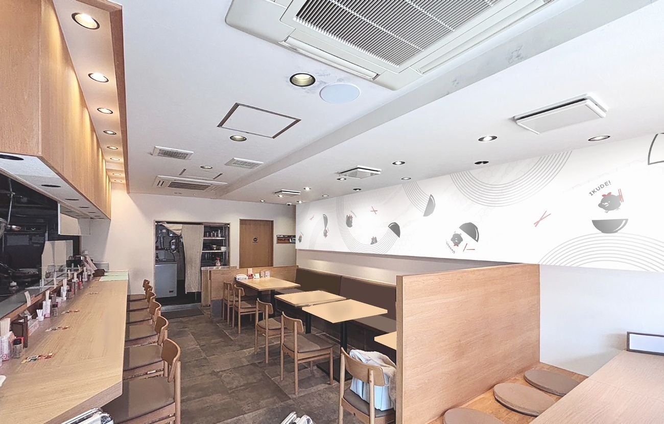 内装には木目を基調とした温もりあるデザインを採用し、カウンター・テーブル席も完備。ランチからディナーまで幅広いシーンでご利用いただけます。