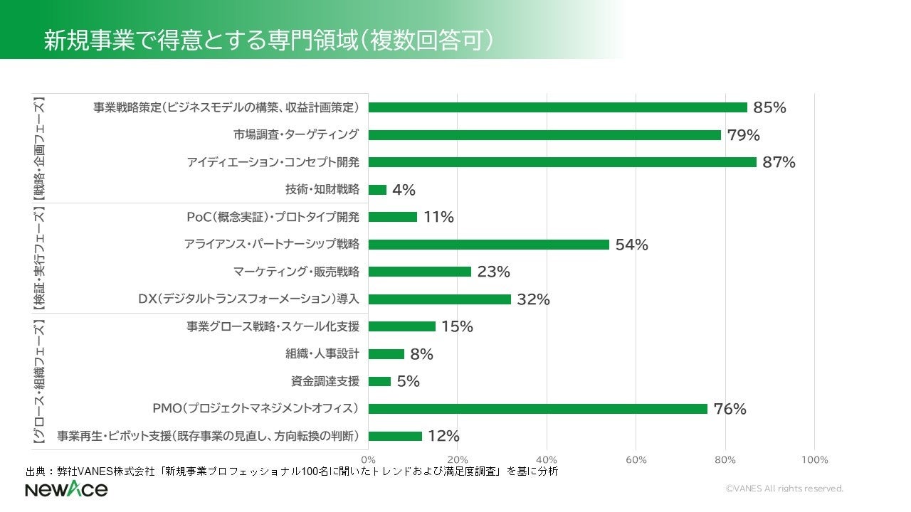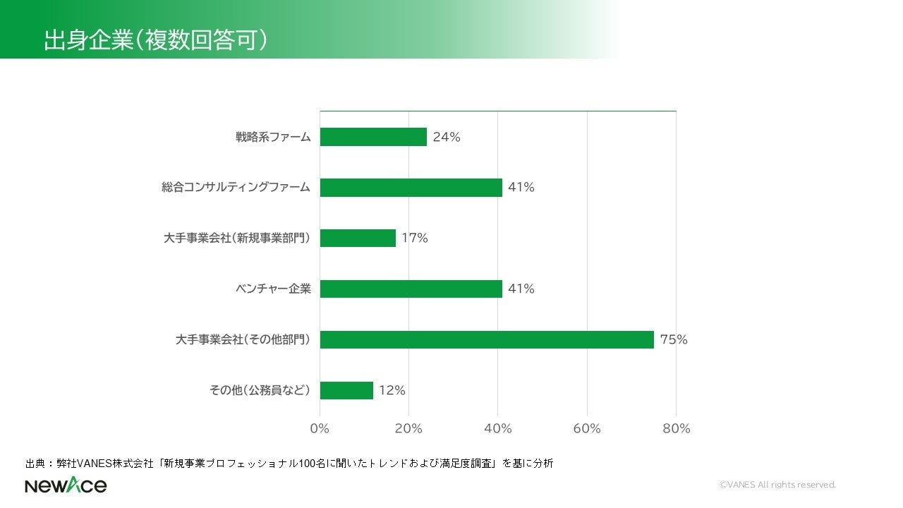 新規事業特化型プロ人材エージェントサービス「NewAce」を運営するVANES株式会社(本社:東京都渋谷区、代表:長尾 浩平)は、NewAceを通じて案件に参画した実績のある新規事業プロフェッショナル100名を対象に意識調査を実施しました。