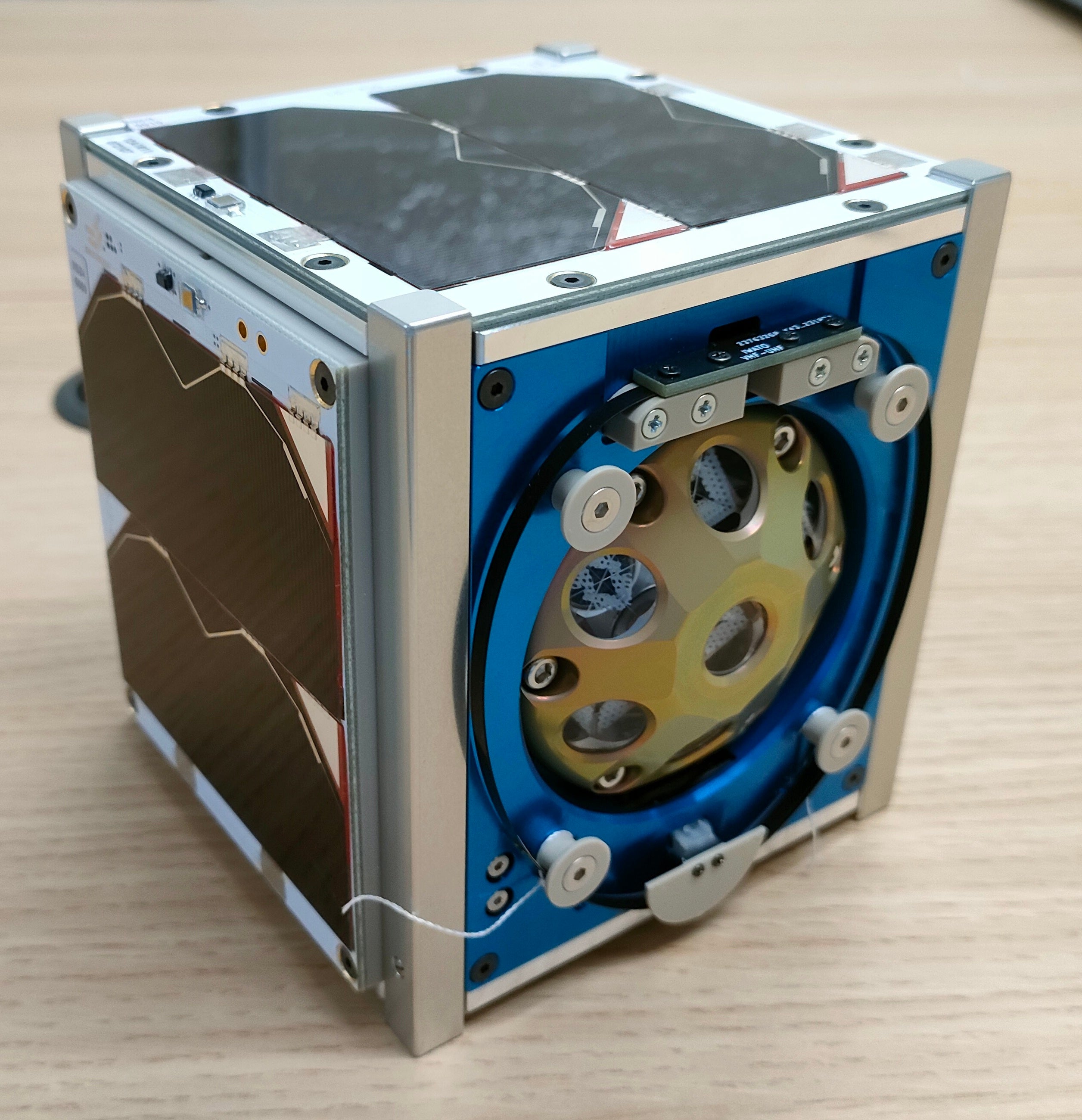 直径62mm、高さ17.5mm、重量約46g。0.5インチ角のCCRを7基搭載し、CubeSatなどの超小型衛星向け。高度約500kmでの利用を想定した軽量・コンパクトモデル。