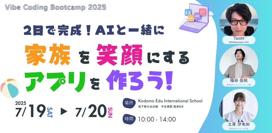 2日で完成!AIと一緒に「家族を笑顔にするアプリ」を作ろう!小中高生向けサマープログラム「Vibe Coding Bootcamp 2025」開催