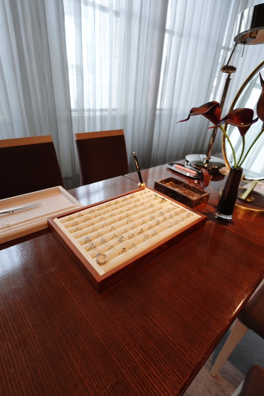 LINEでの事前相談後、実際の相談会にお越しいただくケースや、LINEやDMのみで完結するオーダーも可能です。ジュエリーは後日お送りいただく形で進行できる柔軟な体制を整えています。