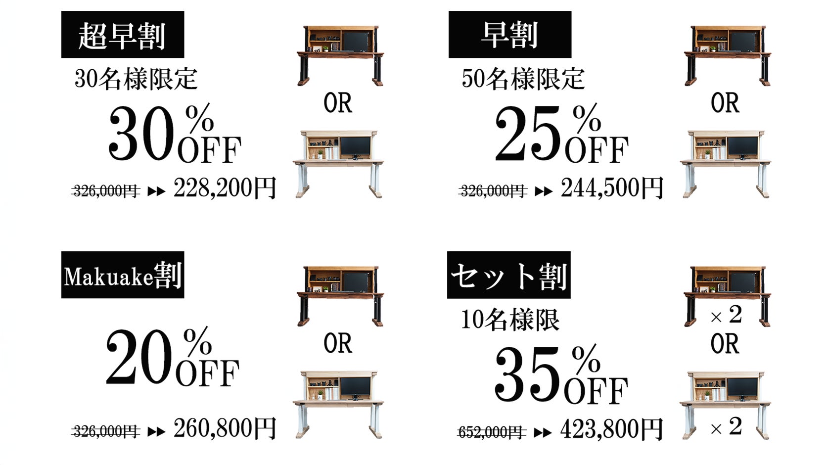 公開前から多くの支持がSNS上で加速。一般販売予定価格326,000円の製品が、Makuake限定で最大35%OFF(10万円以上割引)のお得な価格で提供される。