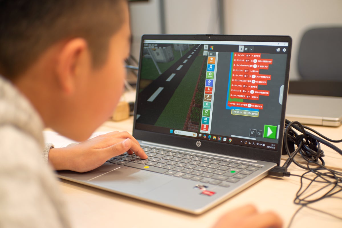 誰もが知っているマインクラフトの世界で、子どもたちは夢中になって遊びながら、プログラミングの基礎を身につけます。