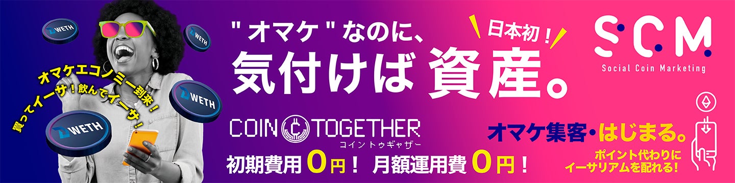 【ポイントの次は“オマケ資産”】イーサリアムを“オマケ”として配布できる販促ツール「COIN TOGETHER」、総合代理店としてソーシャルコインマーケティングが新設